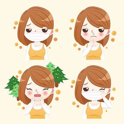 1. 喷嚏:常在晨起或夜晚,或是在接触过敏原后立刻发作。一般每天间断发作数次,每次连续打喷嚏3个以上;
